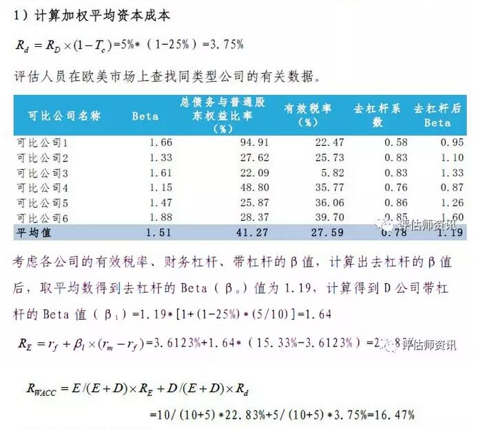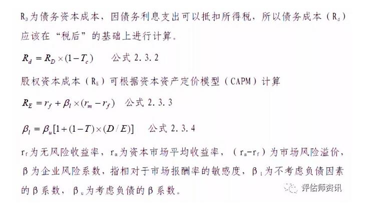 在計算非上市公司股權時,通常采用加權平均資本成本(RWACC)作為企業自由現金流折現法的折現率。加權平均資本成本,是指企業以各種資本在企業全部資本中所占的比重為權重,對各種長期資金的資本成本加權平均計算得出的資本總成本: